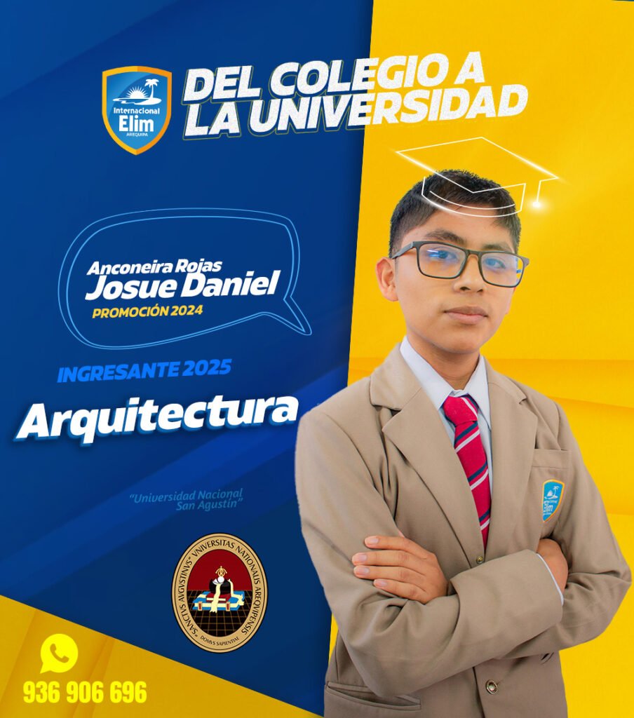 🎉Nuestro estudiante ingresa a la UNSA para seguir su sueño en Arquitectura 🎓 Con gran alegría y emoción, celebramos el logro de Anconeira Rojas, Josue Daniel, estudiante del Colegio Internacional Elim, quien ha logrado su ingreso a la prestigiosa Universidad Nacional de San Agustín (UNSA) para estudiar la carrera de Arquitectura. 🏛️📐 Este importante paso […]